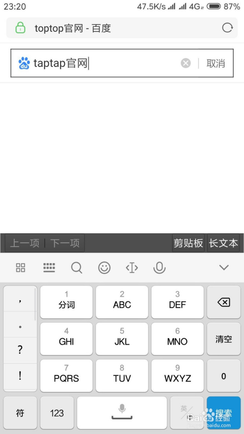 我们首先打开我们的手机浏览器,运用百度搜刮taptap官网。