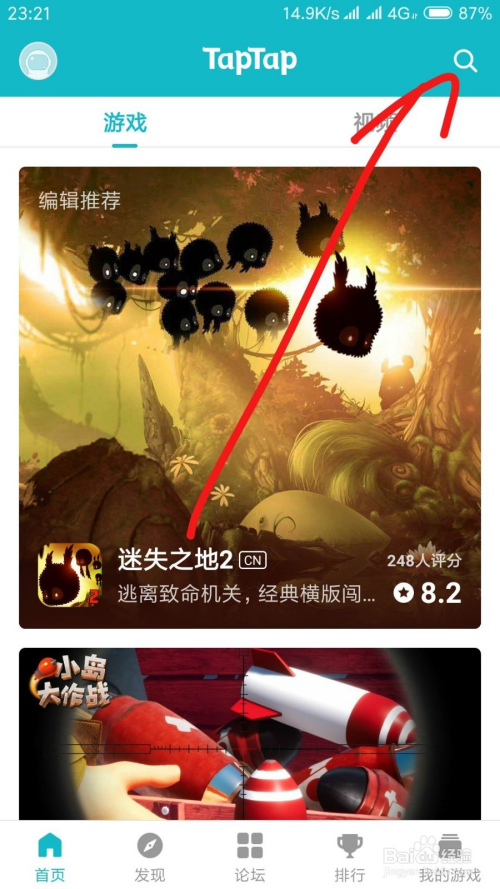 然后我们经由过程百度搜刮之后们就能看到taptap官网,点击进去。