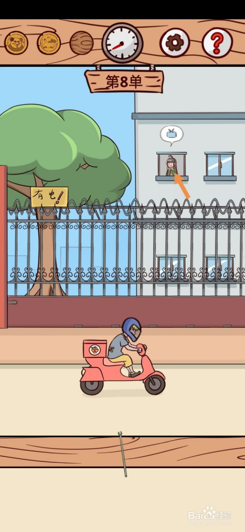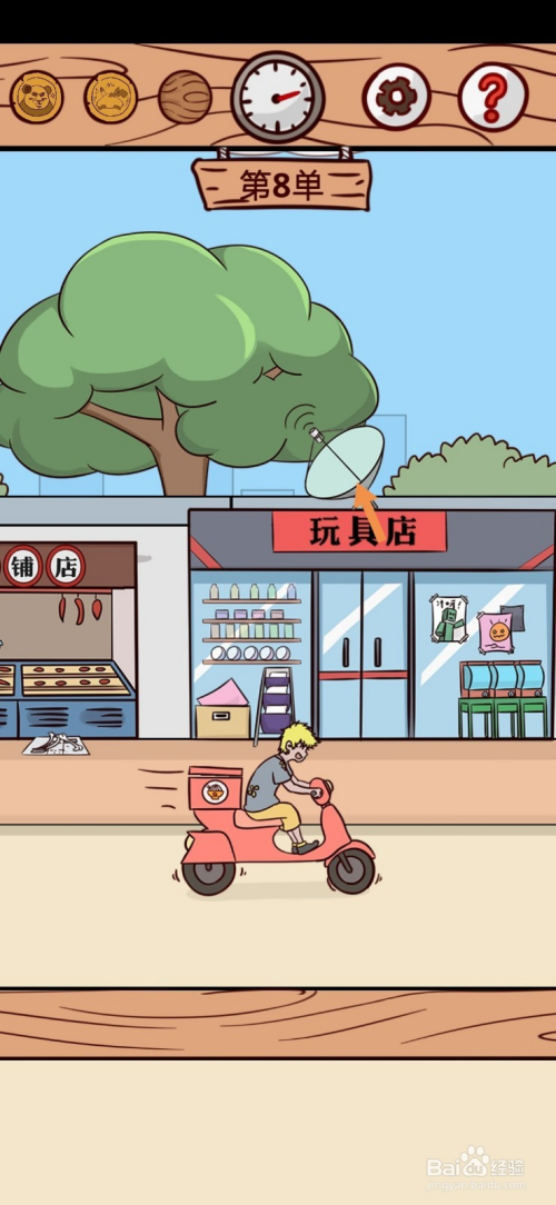 第8关在路上,点击玩具店上的天线。