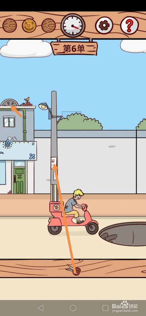 第6关在路上,点击电线杆右边的铰剪。