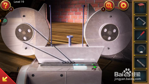 点击地面上的放映机,将菲林调整到中心位置,将菲林掏出来。操纵螺丝刀将左面的电扇打开,再将电扇叶拾取下来。