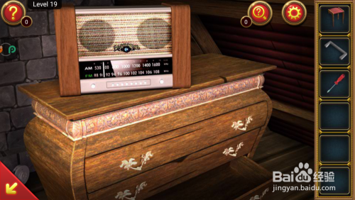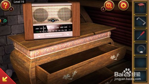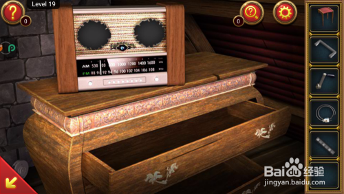 点击右面的收音机,打开下面的抽屉,将里面的插头拾取起来。