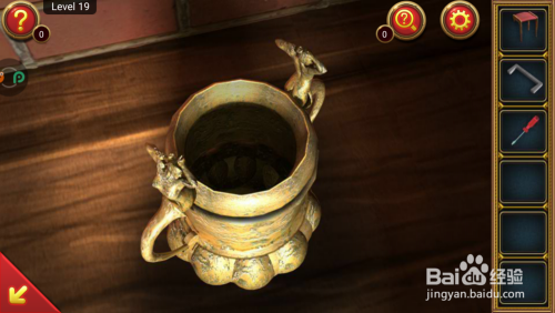 将地面上的凳子捡起来,再点击窗户下面瓶子将把手和螺丝刀拾取起来。