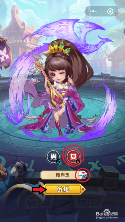 新手进入,需要选择性别,点击骰子切换名字,再点击【建立】游戏脚色就成立好了。