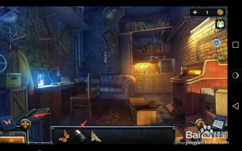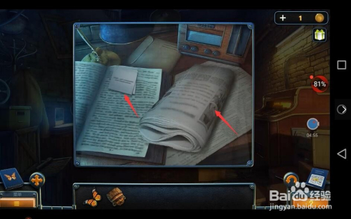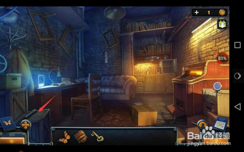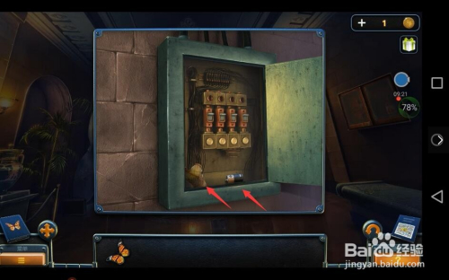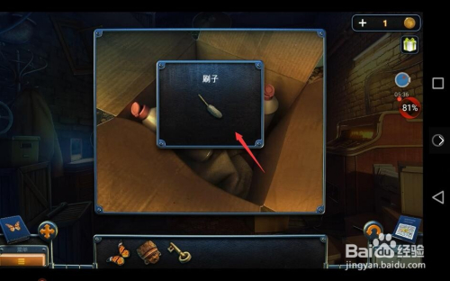 接着我们用钥匙打开图示的小箱子后用刷子除失落尘埃拿到电池和纸片。
