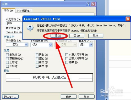 在弹出简直认对话框选中“是”单击,默认的字体就点窜当作“隶书”了