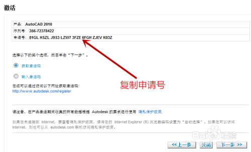 接下来可以看到我们激活的申请号,我们需要把这个复制下来,按下ctrl+C。