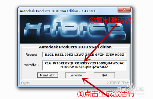 接下来需要点击【Generate】,点击后会在【Activation】里生当作激活码,把这个激活码复制下来。