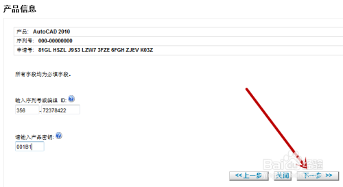 激活的第一步需要输入序列号和秘钥,这个大师可以直接在网上搜到,填上后点击【下一步】。