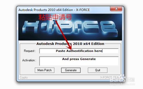 打开注册机后我们要点击【Request】,把我们刚复制的申请号粘贴进去。