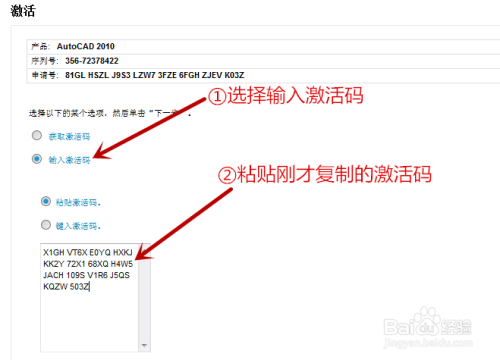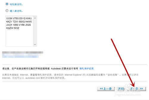 返回到cad的注册界面,点击【输入激活码】,然后把激活码粘贴鄙人方。