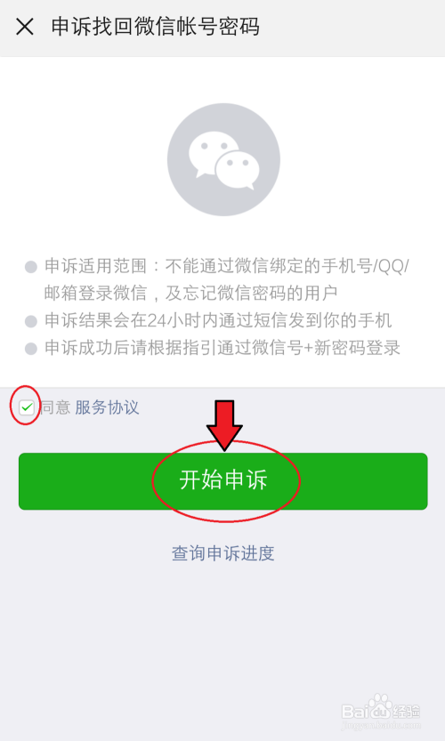 点击“赞成办事和谈”,再点击【起头申诉】