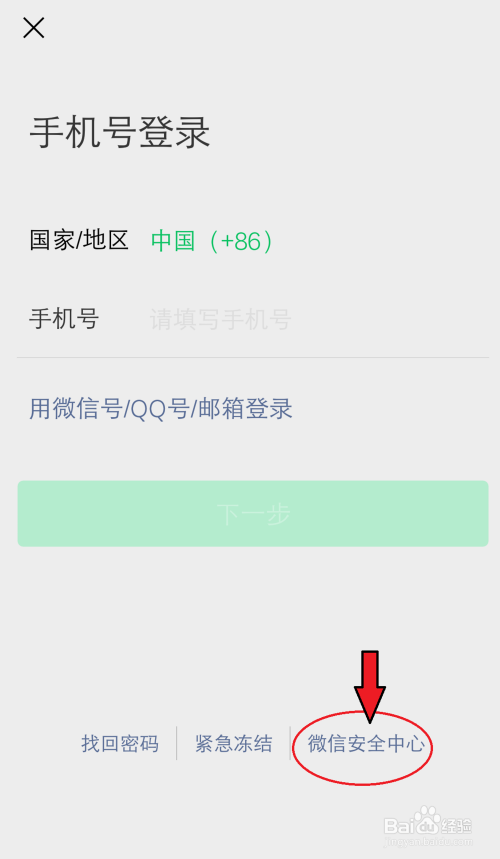手机打开微信登录页面,点击【微信平安中间】