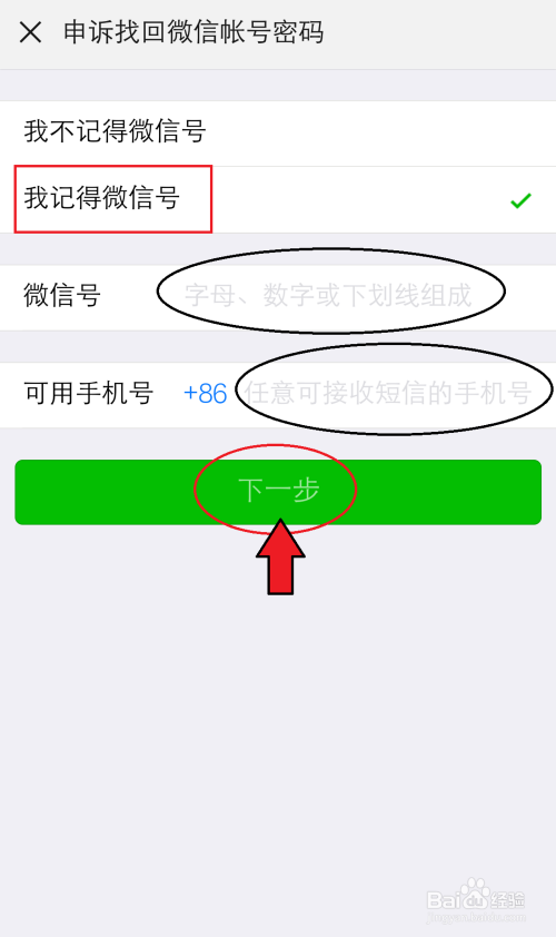 若是不记得微旌旗灯号,点击【我不记得微旌旗灯号】。