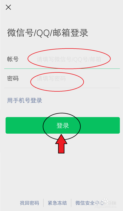 到微信登入页面,输入适才的微旌旗灯号,密码,点击【登录】