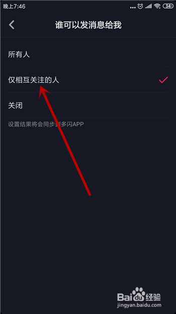 若是只是不想接管目生人的动静,点击【彼此存眷的人】即可。