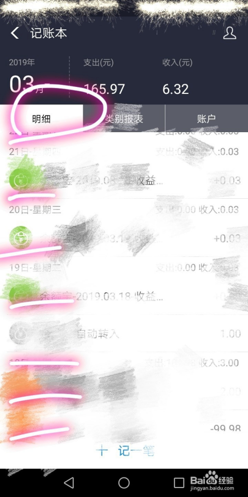 接下来,我们就会看到记账本中记实的具体出入状况;