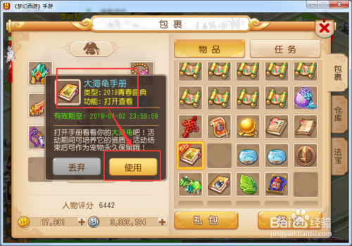 游戏玩家选择培育大海龟今后,在背包内会生当作一本大海龟手册。点击利用大海龟手册也可以打开大海龟培育界面。