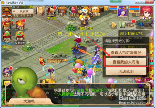 游戏玩家首先需要点击旁边的大海龟NPC。然后再点击兑换栏中的“查看我的大海龟”。