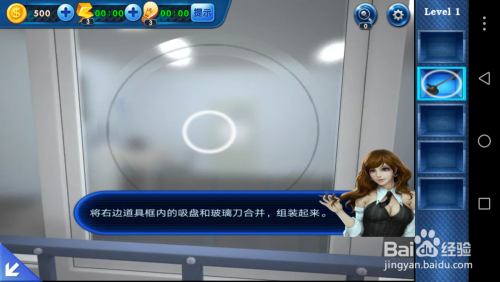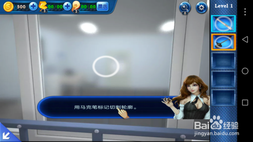 将玻璃刀放在玻璃上,画一个圆圈,这样玻璃就打开了,本关的使命竣事了。