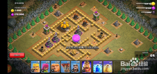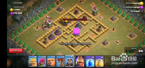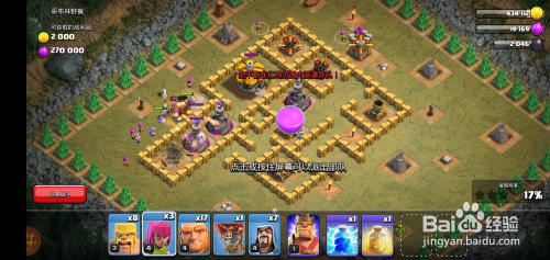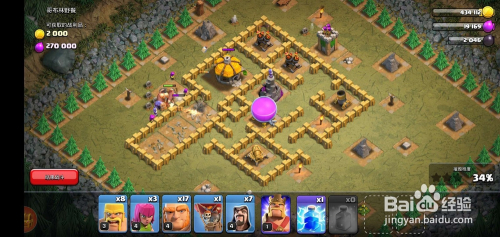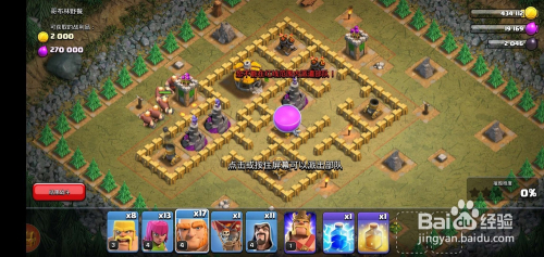我们看到敌方防御兵器本家儿要位于左下方,先派出5-6个巨人去攻打,本家儿要用于当肉盾吸引火力;