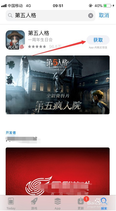 然后就可以进入第五人格游戏的下载页面了,点击后面的获取按钮就可以了,如图所示。
