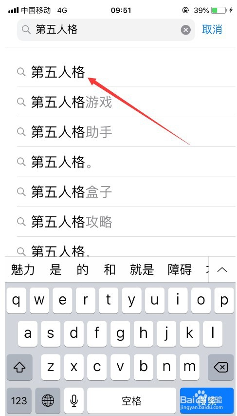 进入搜刮功能之后,直接在输入框输入“第五人格”就可以了,选择搜刮成果的第一款,如图所示。