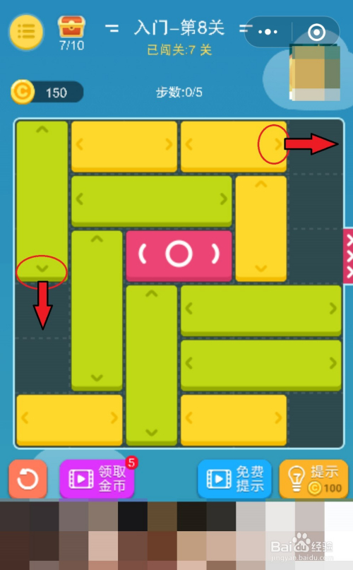 滑动方块,方块上的箭头就代表它可以滑动的偏向。