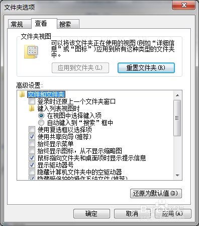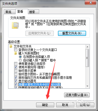 勾选“埋没计较机文件夹中的空驱动器”复选框;