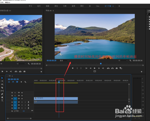 将需要耽误时候的画面导出保留,然后在将导出的单帧画面执行导入号令,在导入到PR软件项目中。