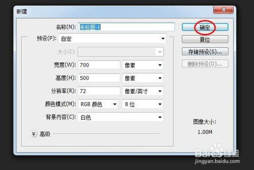 第一步:打开ps软件,新建一个白色画布,尺寸按照本身的需要设定。