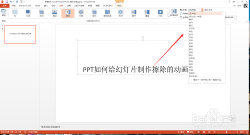 PPT建造设置幻灯片之间切换过程的擦除动画结果,小编在此具体介绍一下。