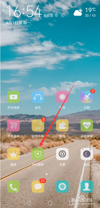 打开华为mate20 pro手机后直接点击桌面上的手机管家,如下图所示。