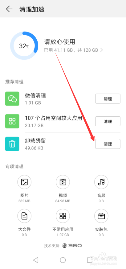 进入华为mate20 pro华为mate20 pro卸载残留界面后可以看到要清理的垃圾,如下图所示。