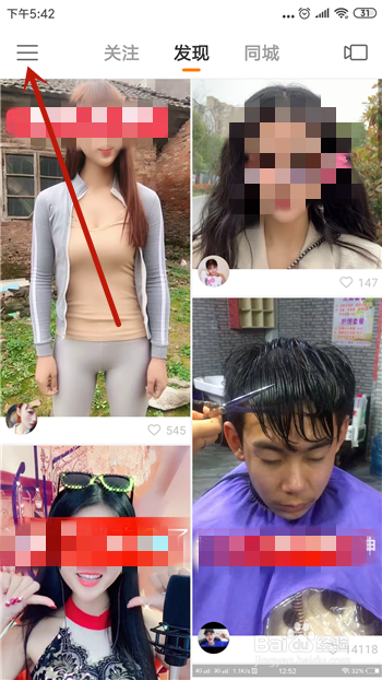 然后在快手里点击左上角的【三】按钮。