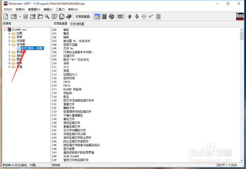 回到Restorator 2007,右击树形列表中单击“字符串”下的“中文xxx”文件选着导入,导入桌面方才点窜的文件。