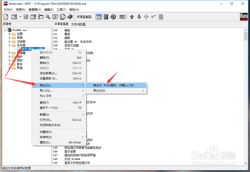 右击该文件选着导出-导出为“中文xxx.rc”,选着导出到桌面(或你指定的文件夹),建议导出到桌面便利查找