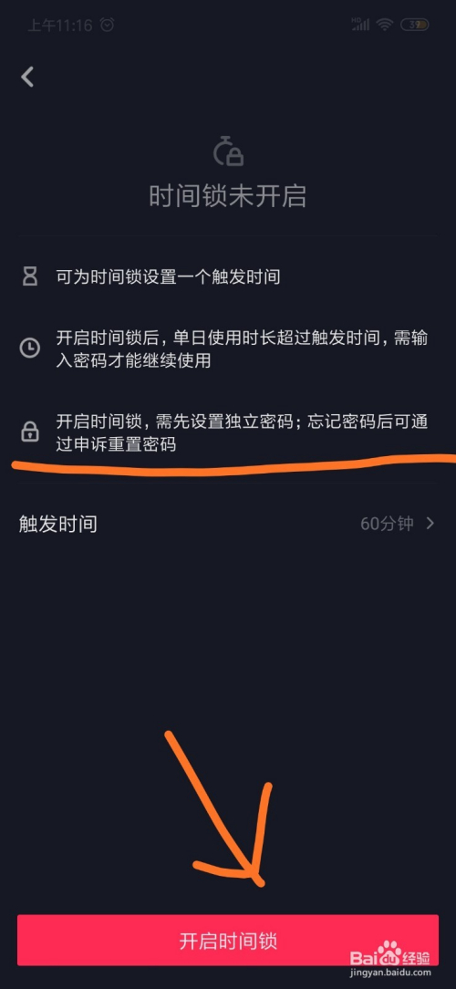 点击进入“时候锁”,开启时候锁,需要设置自力密码。默认触发时候为“60分钟”,可以本身调整时候。