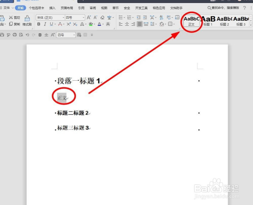 我们把文档中的三个段落样式别离设置当作“题目1”“题目2”“题目3”