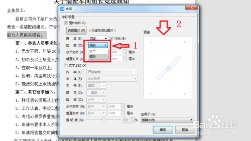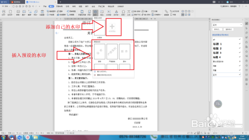 这是出来下拉列表,有添加和预设水印,若是入社水印知足你的要求,那么你就找到此中一个点击即可完当作插入,若是想利用本身的图片作为水印,那么点击加号。