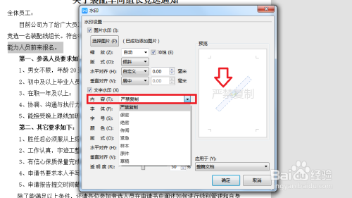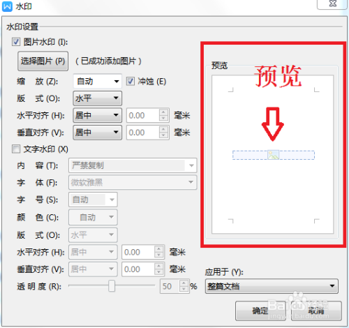 选择完点击确认即可完当作。但此时并未插入到页面中,我们还会到前一步的插入---水印----找打本身方才添加的图片,点击即可完当作水印的插入。
