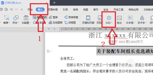 点击插入,找到水印按钮,点击。