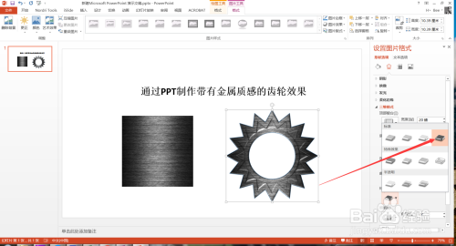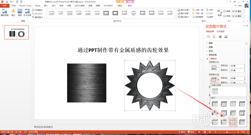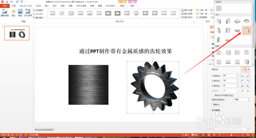 上一篇经验,小编介绍了一下如何建造齿轮的外形结果,今天标的目的大师介绍PPT建造质感真实的金属齿轮结果。