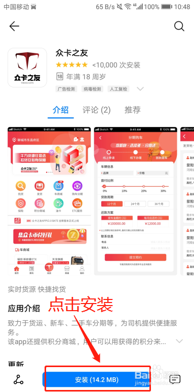 4.点击搜刮后进入众卡之友下载界面,点击下方“安装”