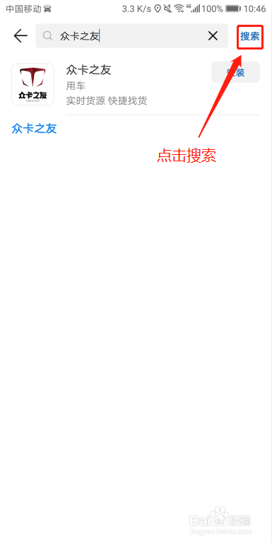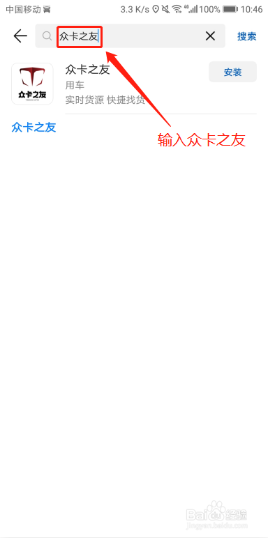 2.进入应用商铺后,点击最上方搜刮,输入“众卡之友”