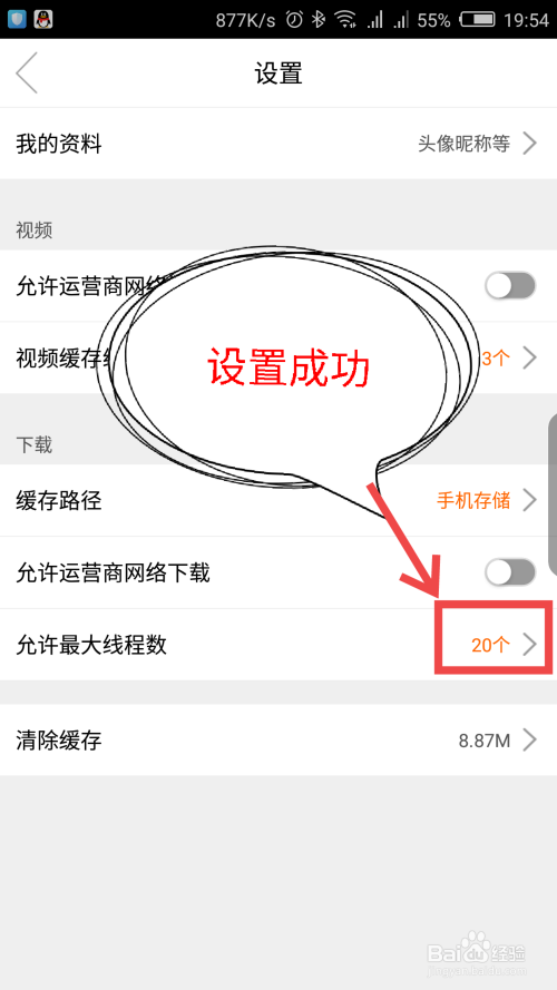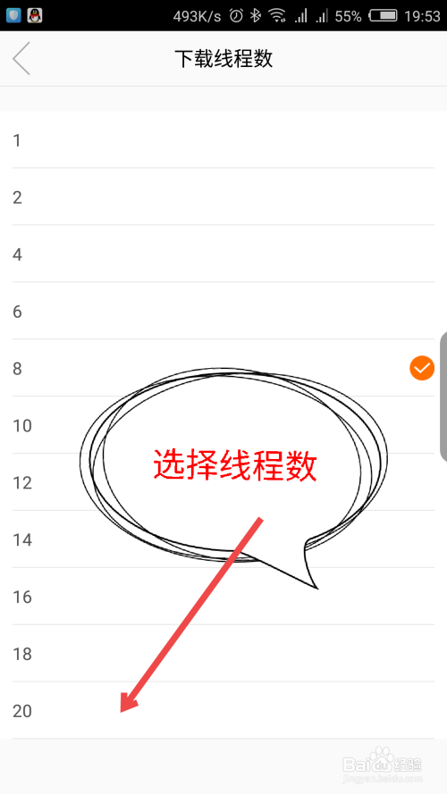 鄙人载线程数里面,默认的用8个线程,最大可以设置20个线程,点击设置为最大20。如图所示
