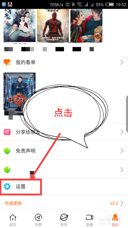 然后在打开的我的界面中,需要滑脱手机屏幕,找到在最下面的设置选项,点击打开设置。如图所示