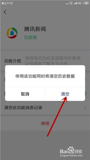 停用后会清空相关的信息,点击【清空】可封闭腾讯新闻的功能。