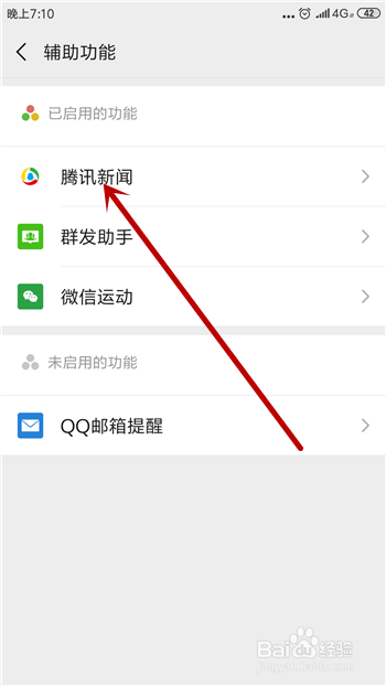 在辅助功能里可看到开启利用的有【腾讯新闻】,点击起头设置。