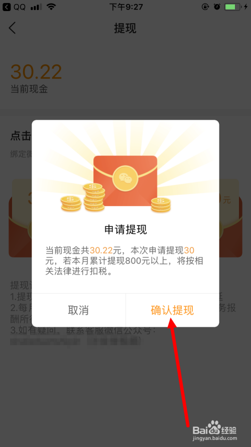 再点击 确认提现 。